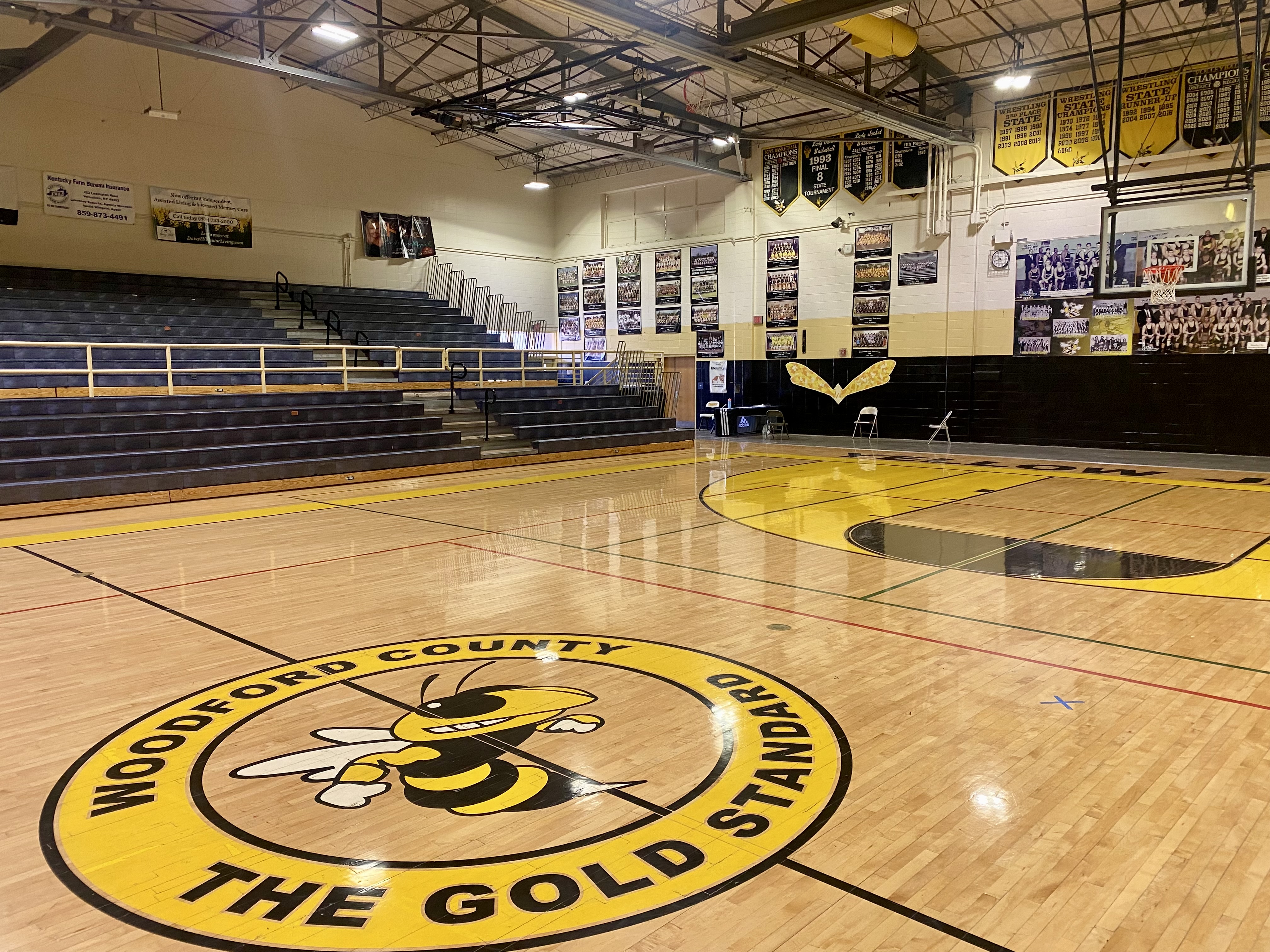 In 2024, the WCHS gym has the school’s slogan at midcourt.
