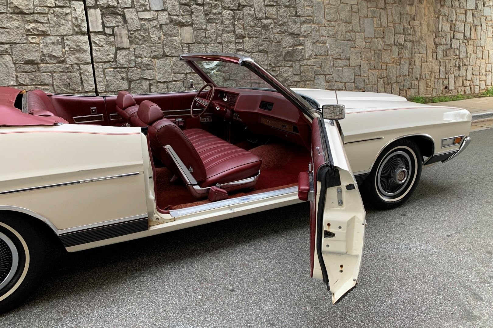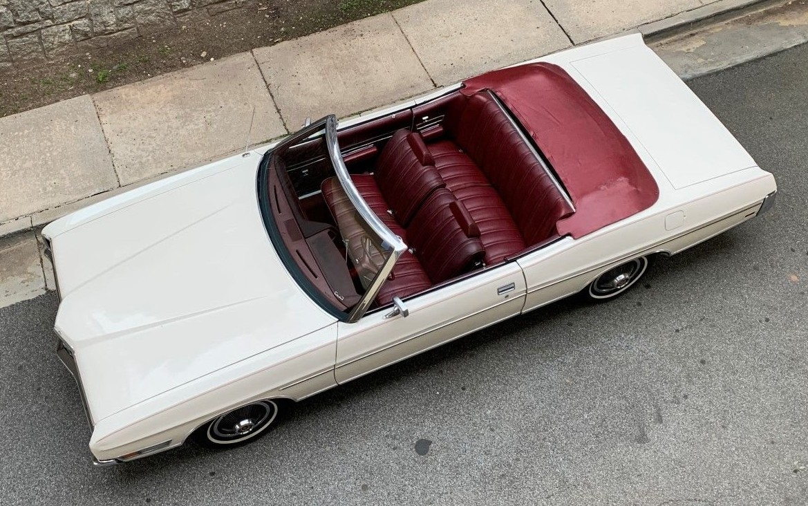 A 1972 Ford LTD convertible, shown here listed for sale online. It’s similar to Don’s, except it’s intact. I’m confident Don wrecked his.